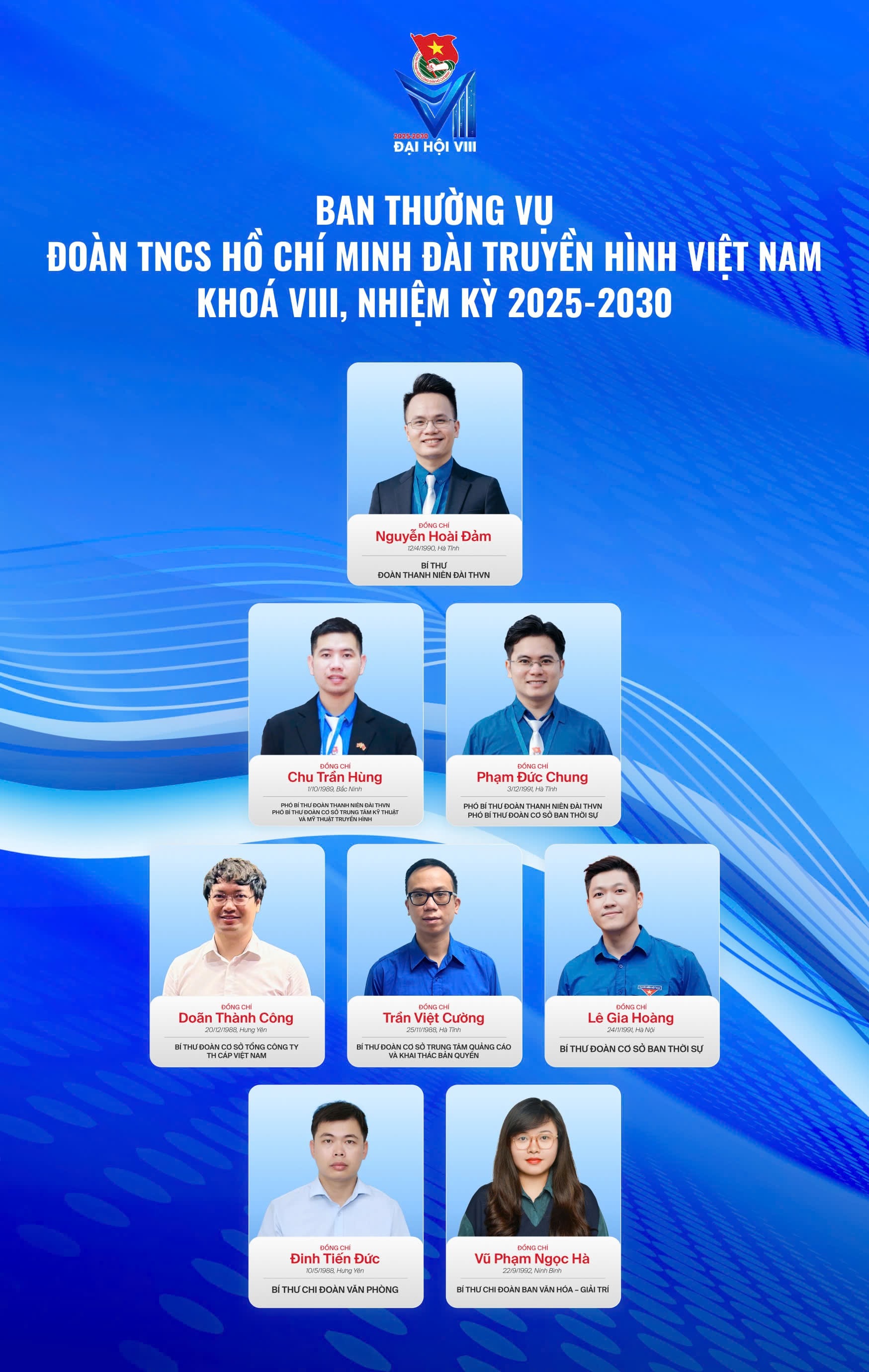 Vietnam Television has officially announced the list of the Executive Committee, Standing Committee and Inspection Committee of the Youth Union for the new term 2025-2030.