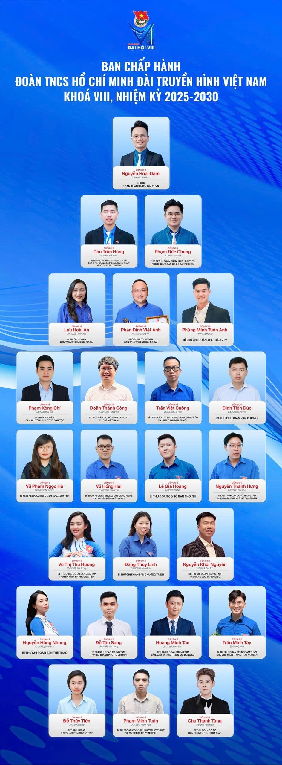 Vietnam Television (VTV) has announced the list of key personnel of the Ho Chi Minh Communist Youth Union of Vietnam Television for the 2025-2030 term. The lists include the Executive Committee, Standing Committee and Inspection Committee.