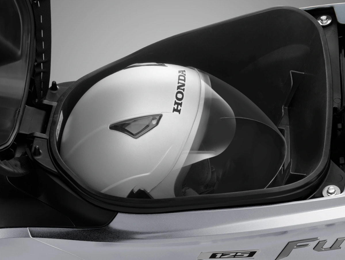 La Future 125 FI 2026 continue de privilégier la praticité. Le compartiment de rangement sous la selle est suffisamment spacieux pour accueillir un casque intégral et des effets personnels, réduisant ainsi le besoin d'un top case supplémentaire. Le verrou multifonction 4 en 1 intègre un verrou électrique, un verrou de colonne de direction, un verrou de selle et un verrou magnétique antivol, simplifiant les manipulations au quotidien.