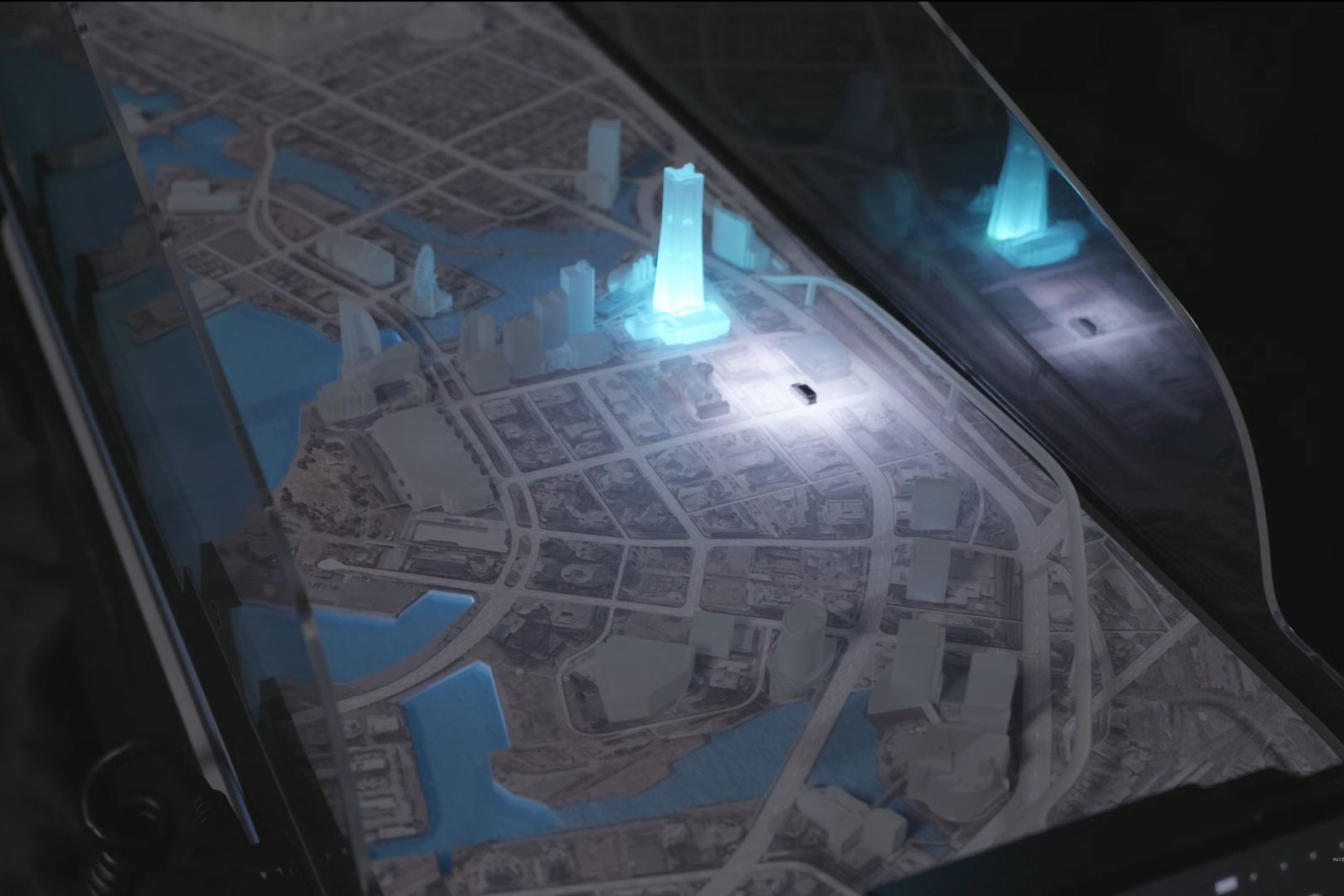 Система включает в себя классический экран интерфейса, панель управления в ретро-стиле с кнопками, ручками и «картой», реалистично имитирующей пространство, в котором движется автомобиль. Модель воссоздаёт окрестности Иокогамы, сопровождаясь комментариями искусственного интеллекта о каждом месте, через которое проезжает автомобиль. Эта «живая карта» сочетает в себе технологии и мастерство, создавая насыщенный физико-визуальный опыт.