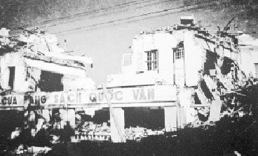 Cửa hàng sách quốc văn trên đường Quang Trung xưa bị bom Mỹ tàn phá.
